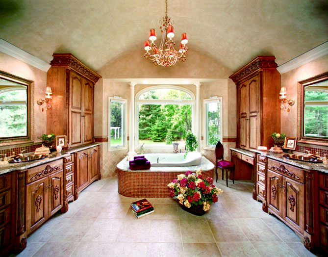 Master Bathrooms take on many feelings. With so many styles available, its easy to find the perfect retreat. Many find that a combination of features and styles suit them. As you may see in a few of these bathrooms we design all types of styles, from Italian to French. The underlying theme is romantic or retreat/ spa style. There's plenty of room for countertops and built in storage throughout.