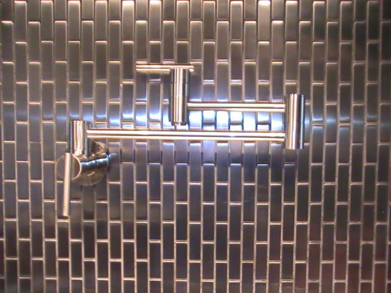 This is a pot filler. This faucet is for cold water only. It is shown above the stove installed on the wall of the backsplash. It extends out over the pot so you do not have to carry a full pot across the room, and collapses when not in use against the wall.