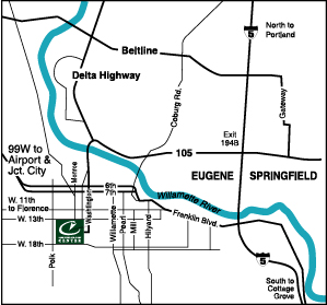 Travel northbound on I-5 until you reach I-105. Take the westbound offramp (194B) into Eugene. As the freeway approaches its end on 7th Street, stay in the middle lane. This becomes Jefferson Avenue and leads you directly to the Lane Events Center entrance where you will see the marquis at the intersection of 13th and Jefferson.